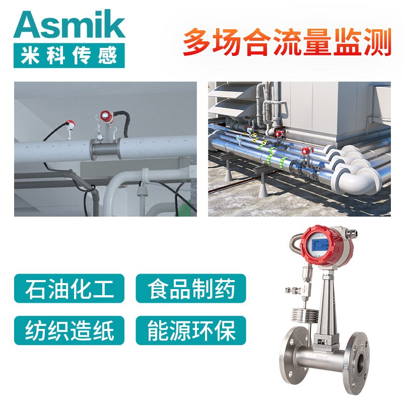 適用場合:渦街流量計是速度式流量計的一種,基于卡門(Karman)旋渦原理研究設(shè)計的,主要用于工業(yè)管道中介質(zhì)流體的流量測量,如:氣體、蒸汽或液體等多種介質(zhì)的流量控制和計量。渦街流量計廣泛應(yīng)用于供熱、供氣、化工、環(huán)保、冶金、紡織、鋼鐵、醫(yī)藥、造紙、排水等廠礦企業(yè)對過熱蒸汽、飽和蒸汽、壓縮空氣和一般氣體(氧氣、氮氣、氫氣、天然氣、煤氣等)、水和液體(如:水、汽油、酒精、苯類等)的計量和控制。
